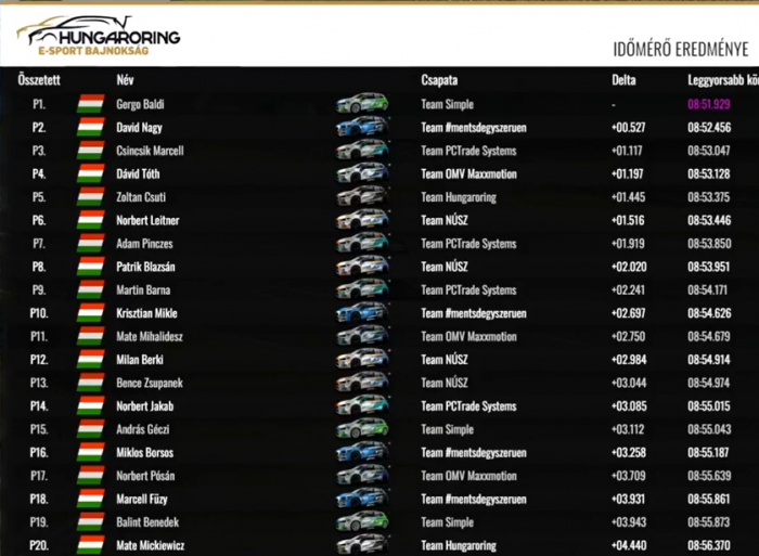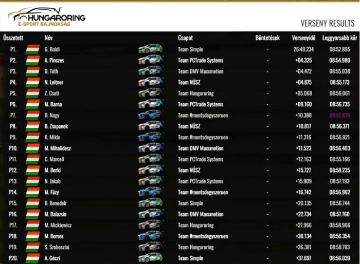 Ennek a négyesnek a külön versenyét végül Pinczés nyerte meg, aminek eredménye egy második hely lett. Ehhez egy dráma is kellett a futam legvégén. A leggyorsabb kört megfutó Nagy Dávid a Döttinger Höhén szélárnyékban felhúzatta magát az élen haladó Báldi Gergőre, és tett egy utolsó kísérletet a győzelem megszerzésére, ám kisodródott a pályáról, és visszaesett egészen a hetedik helyig. A végére még Csuti veszített értékes pozíciókat, aki korábban még a harmadik helyen haladt, ám azzal együtt is csak ötödik lett, hogy Nagy kiesett előle.